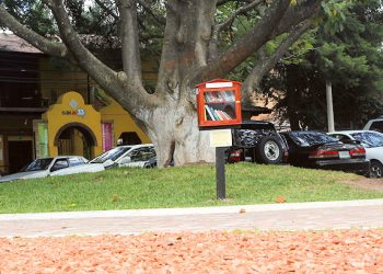Leer más‘¡Intercambio de Libros! Toma un libro. Léelo. Devuélvelo o trae otro a cambio’, reza un cartel que cuelga de una...