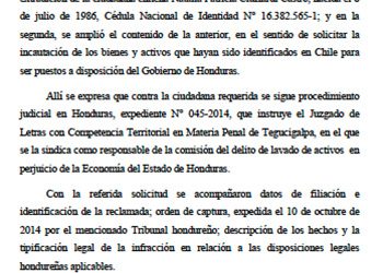En representación del Estado de Honduras, la Fiscalía de Chile ha solicitado a la Corte Suprema de Justicia de ese...