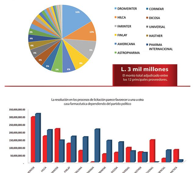 El total invertido en la compra de medicamentos durante este lapse asciende a casi 4 mil millones de Lempiras (alrededor de 200 millones de dólares estadounidenses)—sin contemplar los gastos adicionales incurridos en las compras realizadas directamente por los principales hospitales del país.