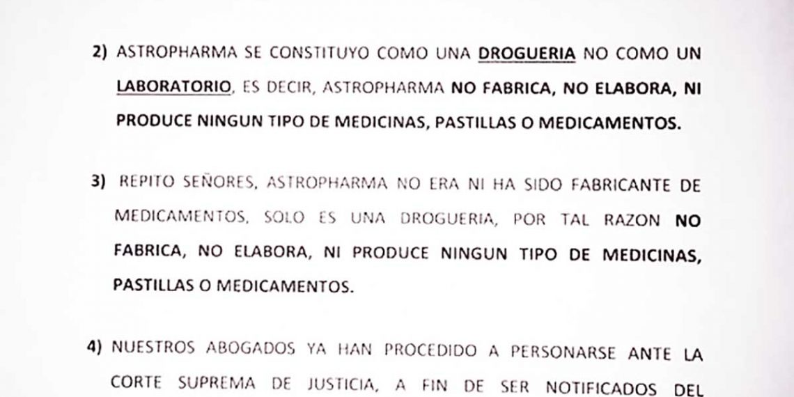 “La empresa Astropharma fue constituida en el año 2000; fuimos socios de esta empresa hasta el mes de diciembre del año 2009; vendimos nuestras acciones a inversionistas extranjeros”, dijo Lena Gutiérrez, vice presidenta del Congreso Nacional, el pasado 18 de junio. Sin embargo, documentación en poder de Revistazo.com pone en duda la veracidad de estas declaraciones. Ver comunicado de prensa