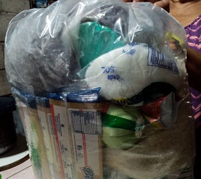 Ella también recibió un saco solidario hace alrededor de dos meses que solo le duró 15 días para su familia de cuatro personas. Recibió una bolsa solidaria la semana del 18 de mayo, pero los alimentos estaban impregnados del olor del jabón. Brenda está nerviosa por darle los alimentos de la bolsa a su familia por temor a que se enfermen por los químicos del jabón.