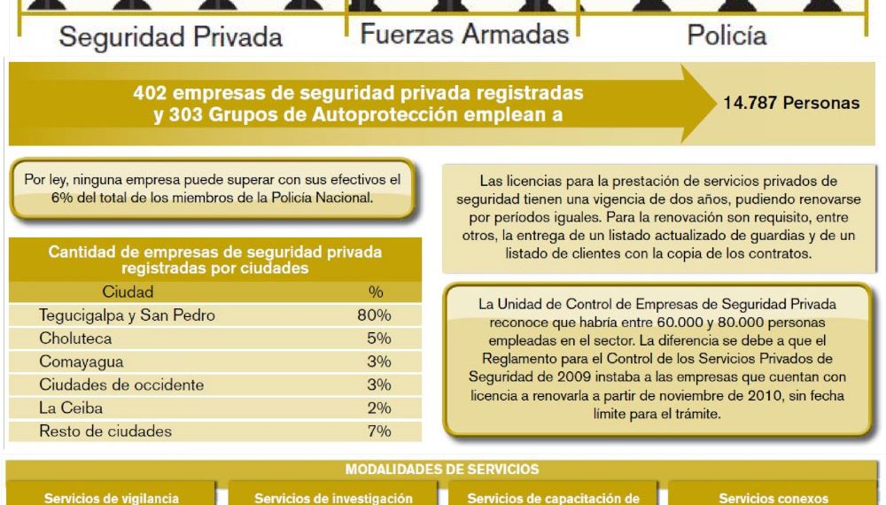 La seguridad privada en Honduras ha continuado ser la mayor fuente de seguridad para el pueblo hondureño, según estadísticas publicados por la Red de Seguridad y Defensa en America Latina (RESDAL).