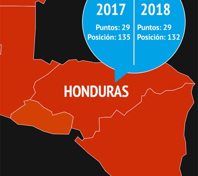 Al igual como en 2017, el índice, publicado por TI el 29 de enero, se mantiene en 29 puntos, de una escala donde 0 significa completamente corrupto y 100 significa completamente transparente. Este puntaje significa que diversos analistas y expertos ven a Honduras como mucho más corrupto que transparente.